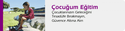 Çocuğum Eğitim Sigortası ile çocuklarınızın eğitimlerini tamamlamasını güvence altına alabilir, eğitim masraflarını beklenmeyen durumlara karşı garantileyebilirsiniz.