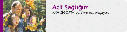 Bir anda başımıza beklenmedik olaylar gelebilir. O anda ne yapacağımızı bilemeyiz, paniğe kapılırız. Acil yardıma ihtiyaç duyarız. AXA SİGORTA bu tip durumlar için Acil Sağlığım Sigortası'nı geliştirdi.